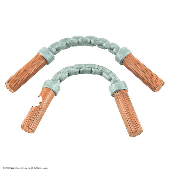- Comes with two nunchaku that are bendable and poseable — ready for action or casually holstered.